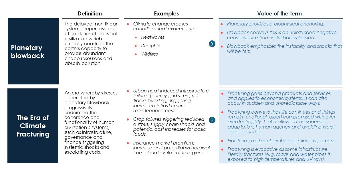 Planetary Blowback is creating a new Era of Climate Fracturing. A clear understanding and term can name this reality so that a more resilient economy can emerge for a harsher, fractured century.